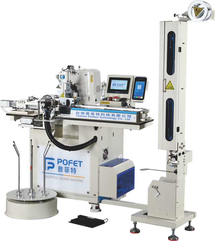 3、可加视觉装置,本机视觉采用CCD电子眼视觉系统,自动识别橡筋带上的L0go或字母位置并精准对齐,误差可控制在1mm以内 生产效率高(视觉橡筋LOGO同色带子)