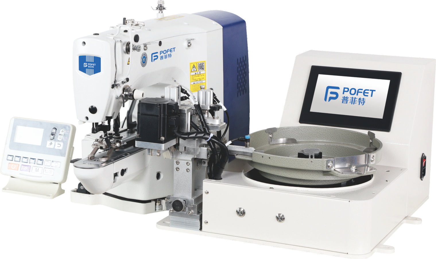 The unit can be paired with Juki, Brother and other brands and models of button-sewing machines, as well as with the machines already in use in garment factories, eliminating the need to purchase new equipment and saving considerable expense.